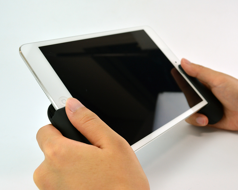 • “iPad mini” にぴったりフィットするグリップは、手のひらと指先でしっかりとホールドできる形状で、両手で持ちやすく、長時間のゲームにも最適です。
