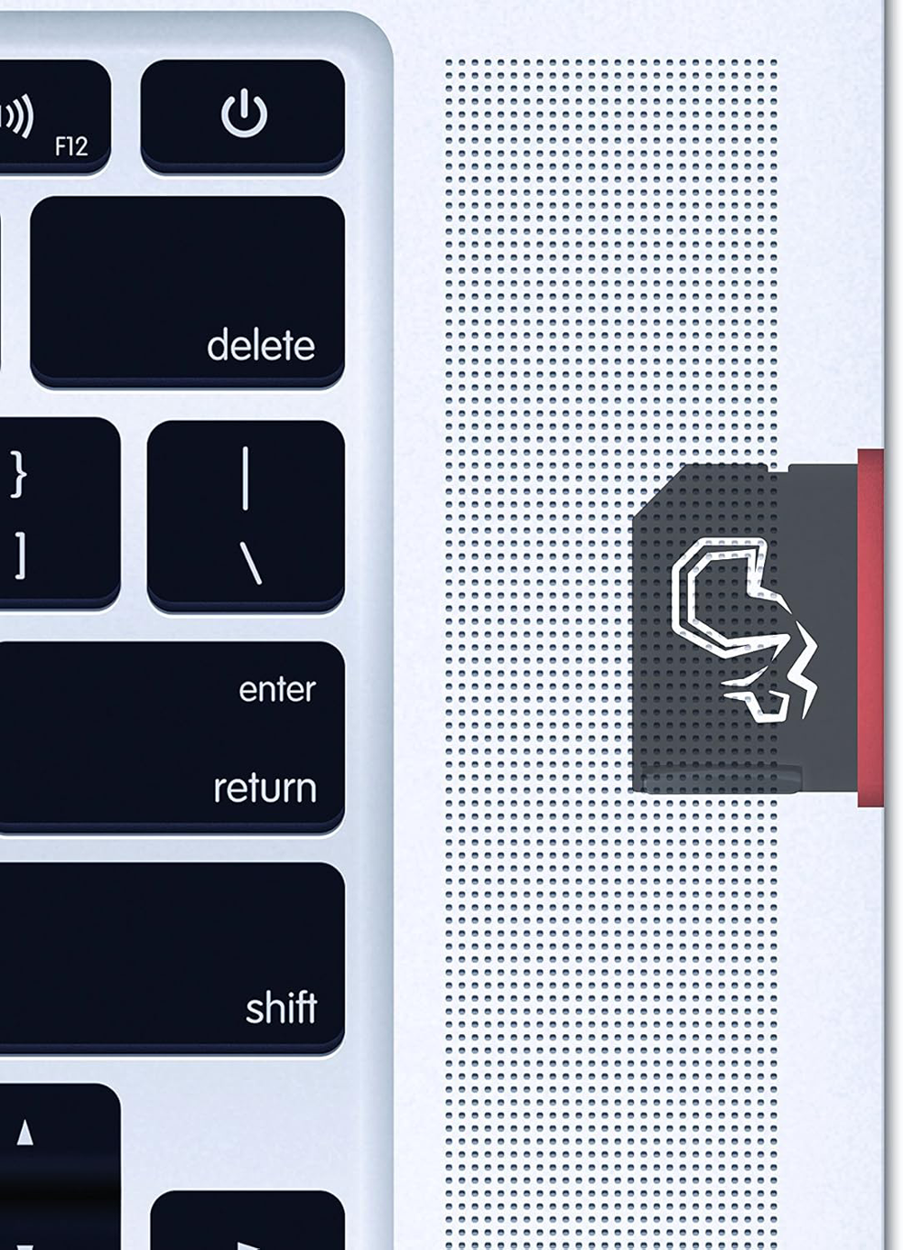 - 付けていることを忘れてしまいそうなほどシンプルでシームレスなストレージにより、“Mac” の SD カード スロットにぴったりとおさまり、はみだすことなく、見た目や持ち運びにも違和感なく利用できます。
