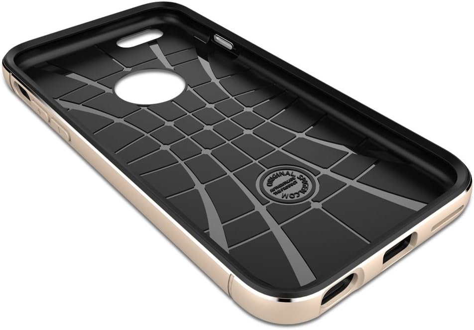 “Spigen ネオ ハイブリッド メタル for iPhone 6” は、より効果的な衝撃吸収のために、ケースの内側には衝撃吸収を強化するため網状のパターンが入っています。二重構造と角部分をより深く設計することで、衝撃吸収と耐久性能をさらに向上させた保護機能を備えています。