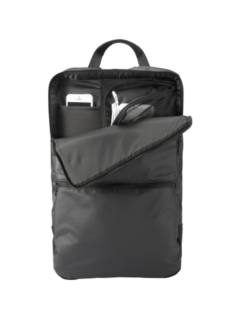 - 容量は 18L でありながらもコンピューター(Mac、Windows)や書類、周辺の小物を収納するスペースをしっかりと確保しています。