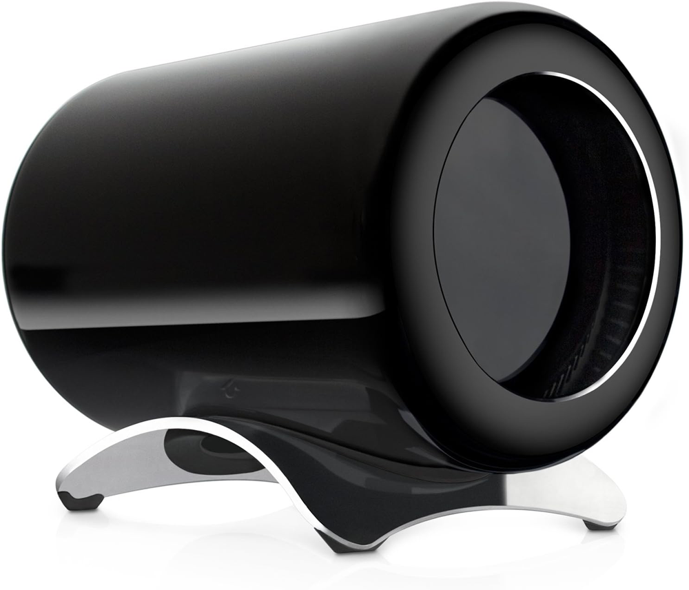 “Mac Pro(Late, 2013)” の光沢のあるアルミニウム筐体のデザインに合わせて、表面をクローム メッキでで仕上げています。