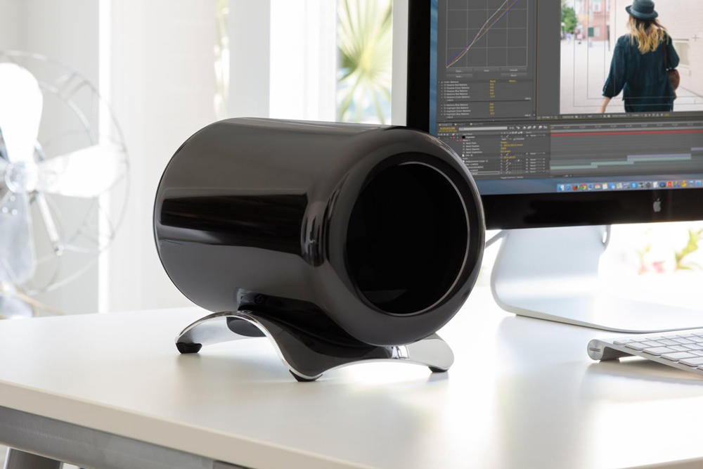 “Mac Pro(Late, 2013)” を横向きで利用するためのガイドラインに沿った設計の特別なデスクトップ スタンド