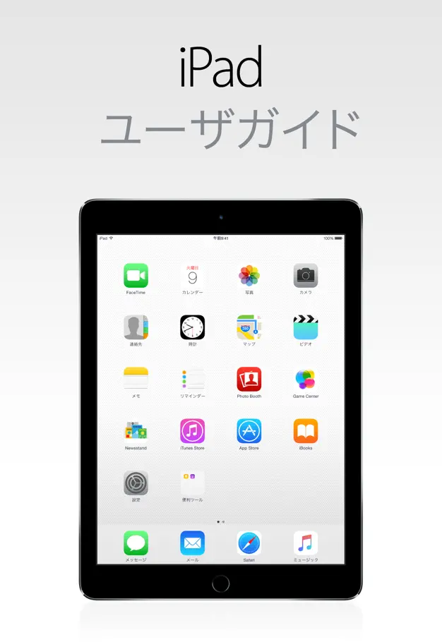 iPad について知っておく必要のあることは、すべてこの小さな eBook に書かれています。iPad がどんなものなのか、そして iPad でできる数々のすばらしいことやそれらの操作方法が分かります。新しい iPad の魅力のすべてが語られている、Apple が作成した最も信頼できるガイドです。「iPad ユーザガイド」は、iPad 2、iPad Air、iPad mini ユーザのライブラリに欠かせない 1 冊です。
