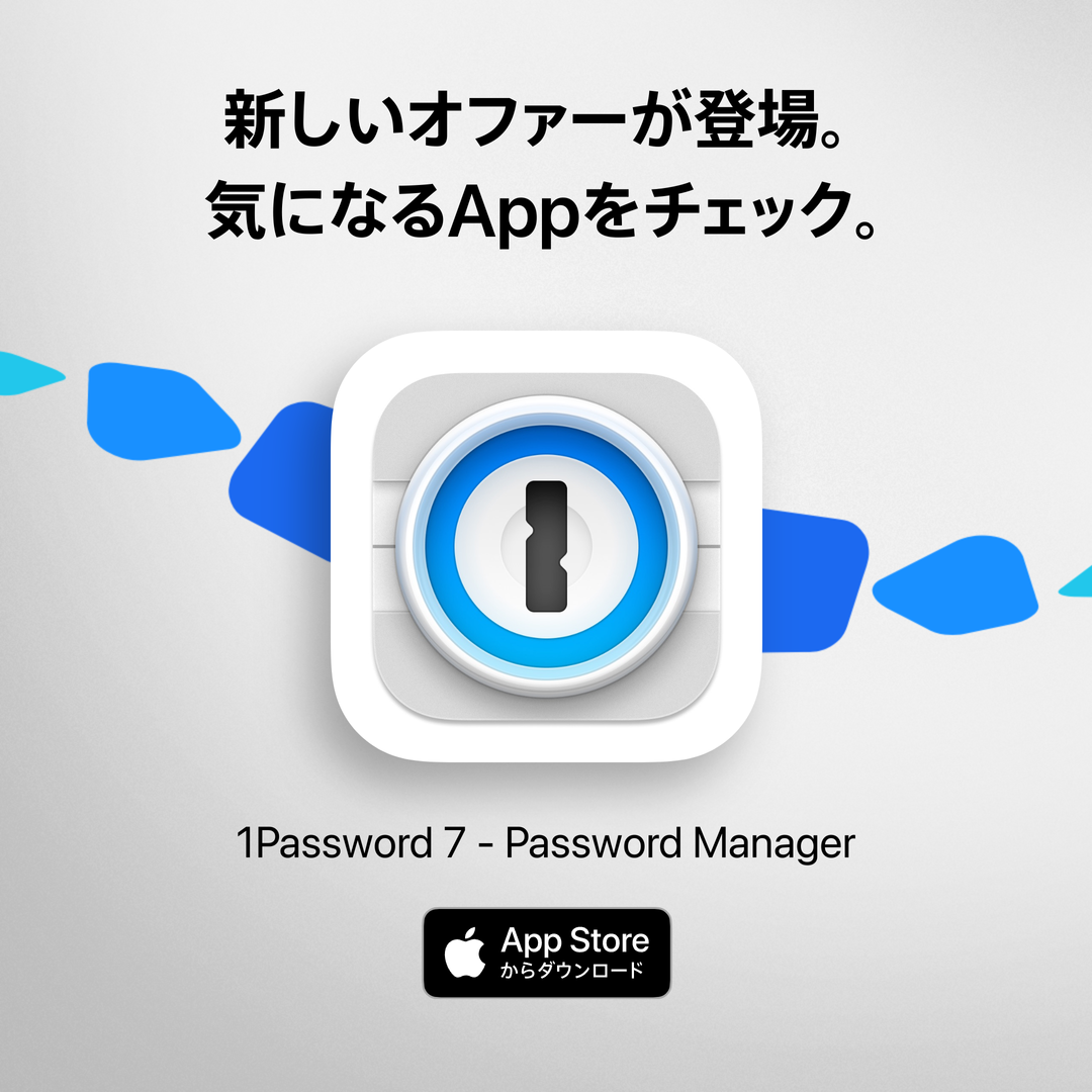 1 Password(旧称:AgileBits)が、App Store にて同社の人気パスワード管理のアプリケーション “1 Password” を 30 % OFF で販売するセールを実施しています。
