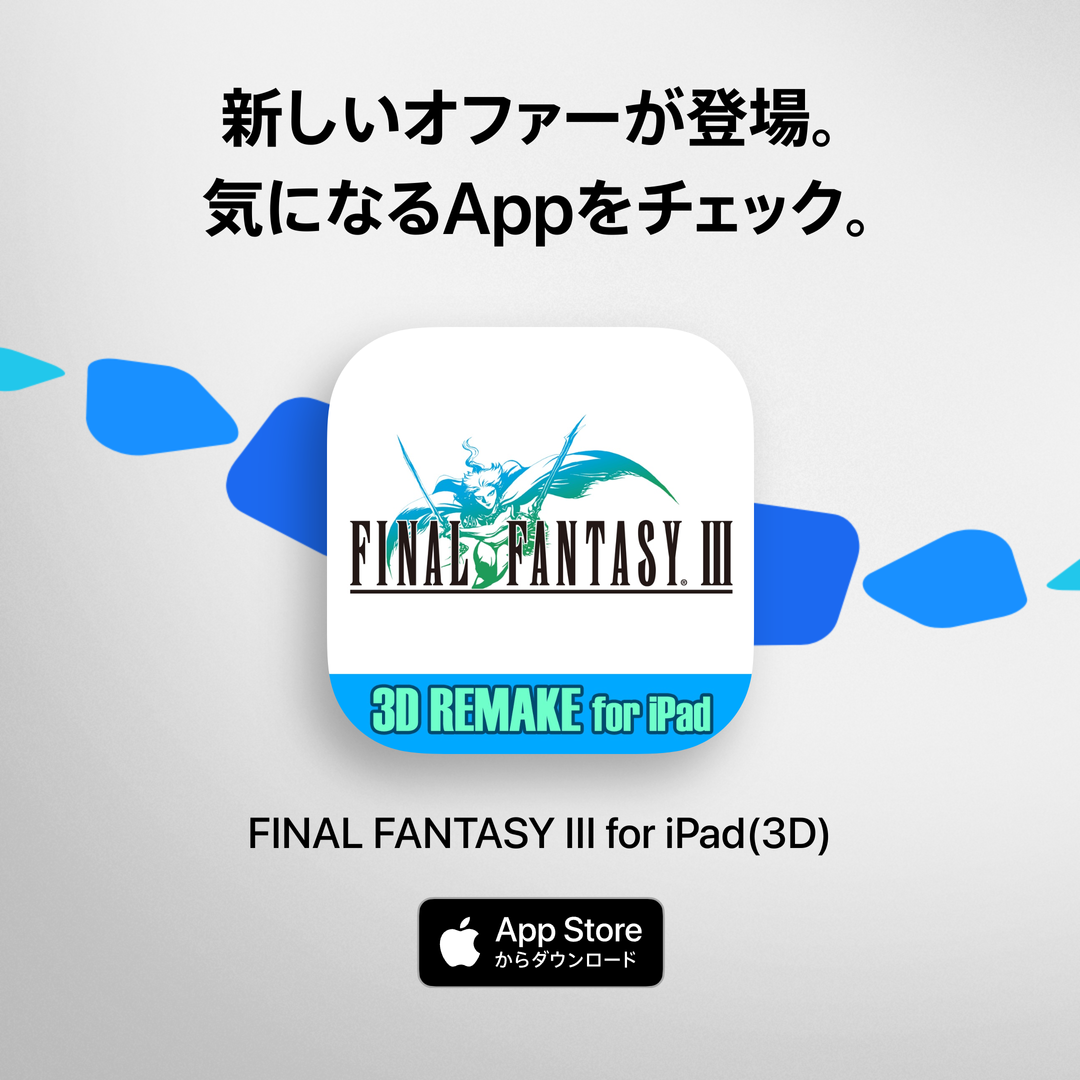 - 【SQUARE ENIX】iOS 版 “FINAL FANTASY III(3D REMAKE)” の 50 % OFF セールを開催中