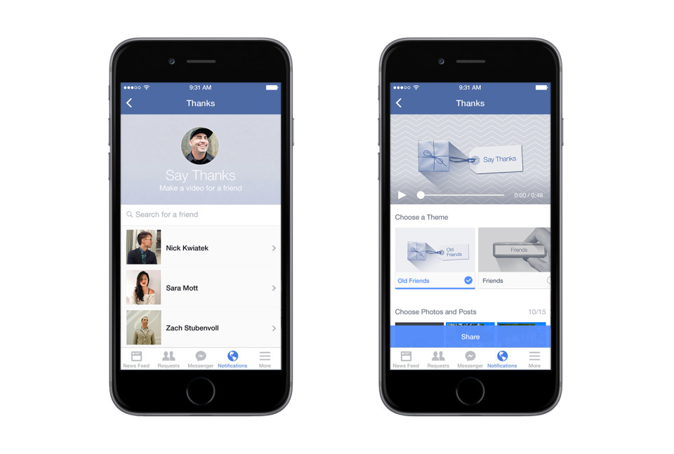 【アップデート情報】特別な想い出の写真を集めた動画を送ることのできる新しいツール “Say Thanks” 機能を展開へ