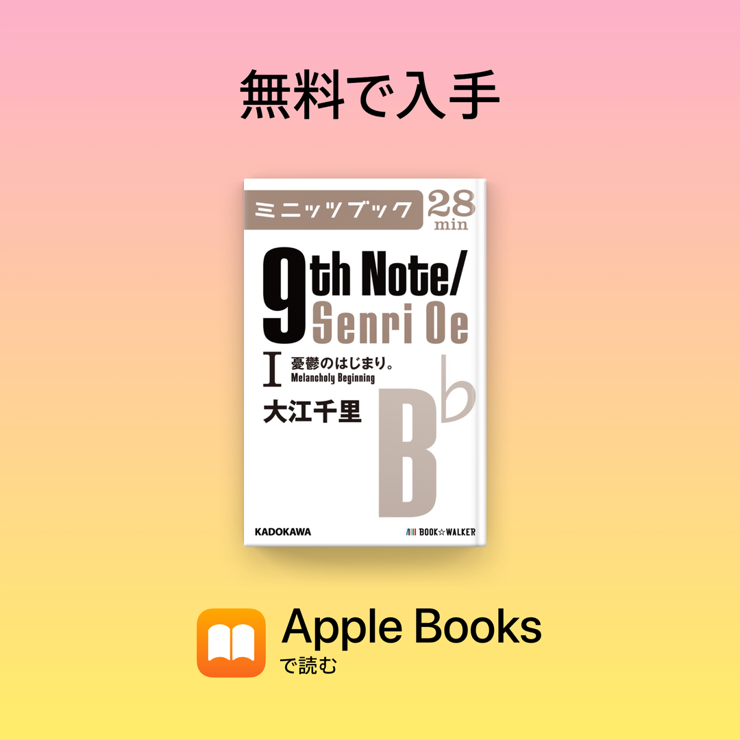 Apple が期間限定で電子書籍を特価で販売する “今週のブック” にて、”大江千里” の “9 th Note/Senri Oe I 憂鬱のはじまり。” をピック アップしています。