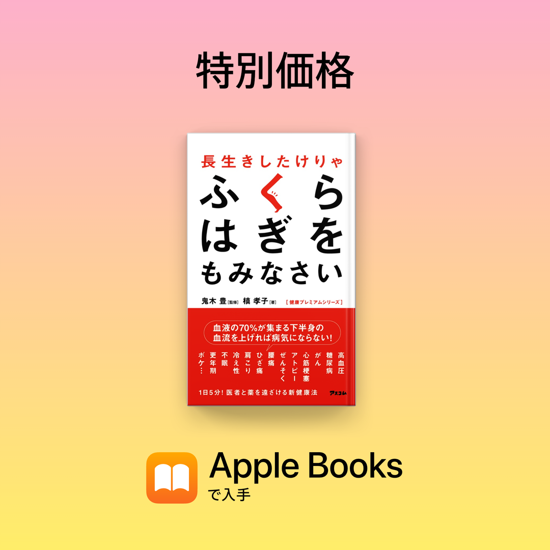 Apple が期間限定で電子書籍を特価で販売する “今週のブック” にて、”槙孝子”、”鬼木豊” の “長生きしたけりゃふくらはぎをもみなさい” をピック アップしています。