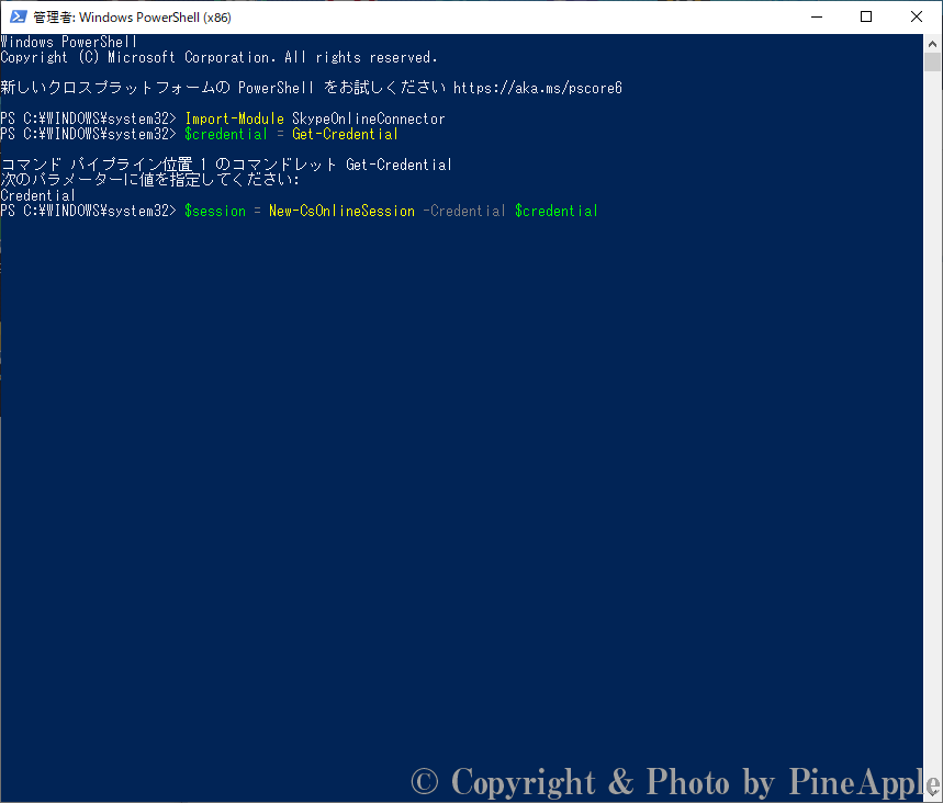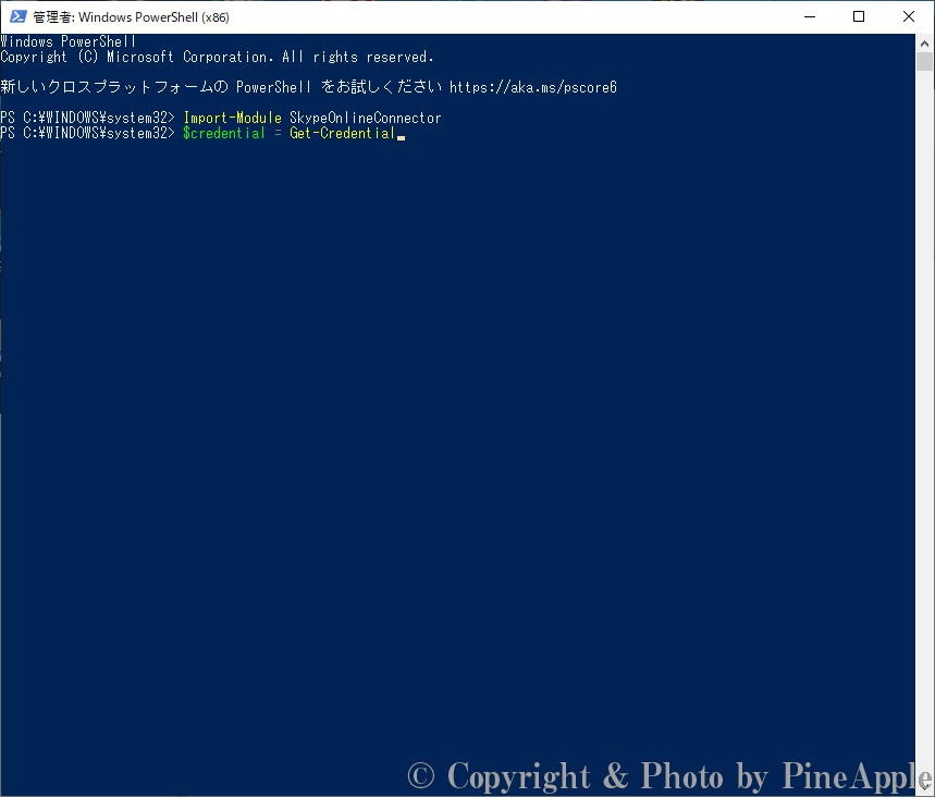 Windows PowerShell:Import-Module MicrosoftTeams" コマンドレットを入力し、[Enter] キーを押し、Microsoft Teams をインストールします。 Windows PowerShell:Import-Module MicrosoftTeams” コマンドレットを入力し、[Enter] キーを押し、Microsoft Teams をインストールします。