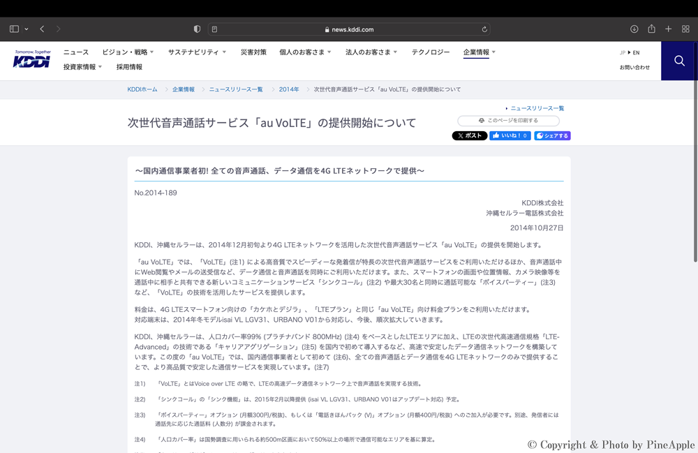 - ・次世代音声通話サービス “au VoLTE” の提供開始について|2014 年|KDDI 株式会社:https://news.kddi.com/kddi/corporate/newsrelease/2014/10/27/726.html
