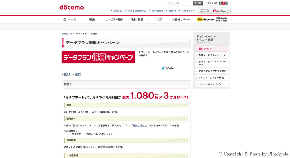 【NTT docomo】”iPhone” および “iPad” も対象になる “データ プラン得得キャンペーン” を実施へ