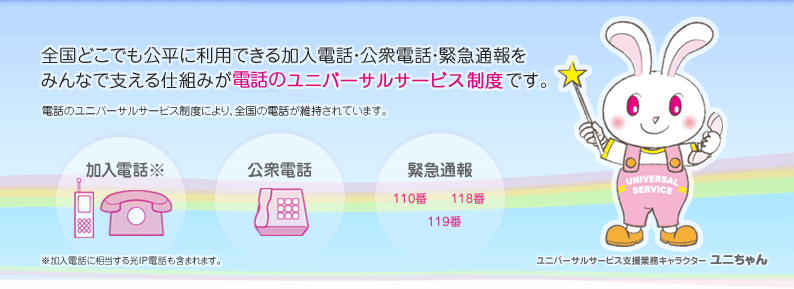 ユニバーサル制度は、ユニバーサル サービスの維持に必要な費用を電話会社全体で負担する仕組みとなります。