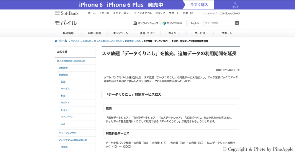 - ・スマ放題 “データくりこし” を拡充、追加データの利用期間を延長|個人のお客さまへのお知らせ|お知らせ|モバイル|ソフトバンク:https://www.softbank.jp/mobile/info/personal/news/price_plan/20140918a/